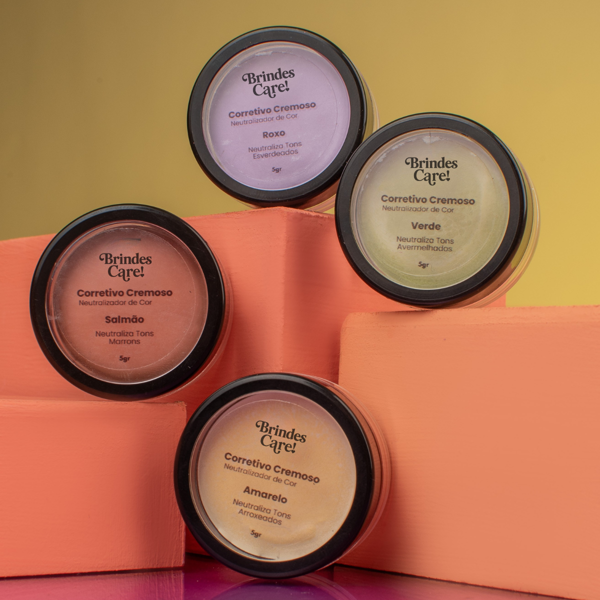 💛 Amarelo: Ideal para neutralizar olheiras arroxeadas e manchas roxas, trazendo luminosidade à área dos olhos.